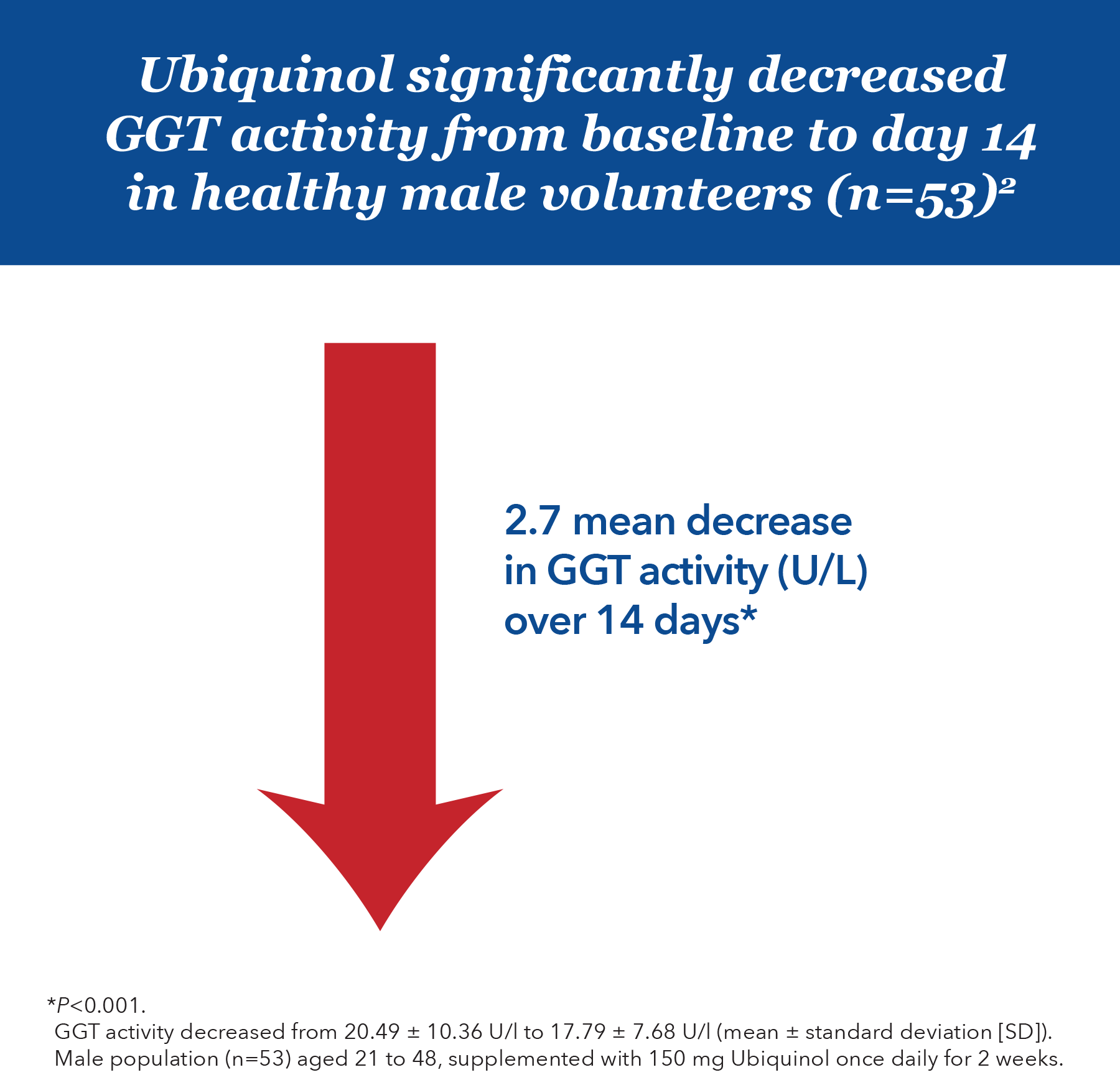 - Onur S, et al. Ubiquinol reduces gamma glutamyltransferase as a marker of oxidative stress in humans. BMC Res Notes. 2014;7:427.